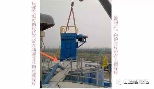 3、焊接好底法蘭,準備好石棉繩或玻璃膠來(lái)密封法蘭對(duì)接處,開始吊裝除塵器(qì)上箱體,對好法蘭孔,穿螺絲加石(shí)棉繩或玻(bō)璃膠,上緊螺絲就OK了。