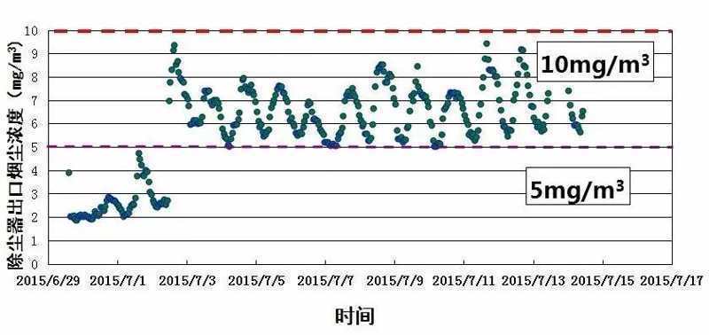 圖1 除塵器出口煙塵(chén)排(pái)放在線數據
