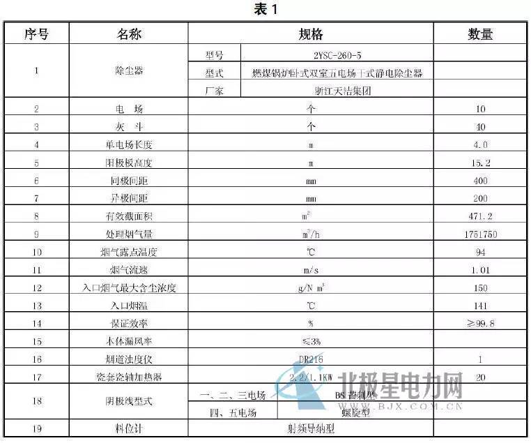 改造前電除塵器性能參(cān)數(見(jiàn)表1)。
