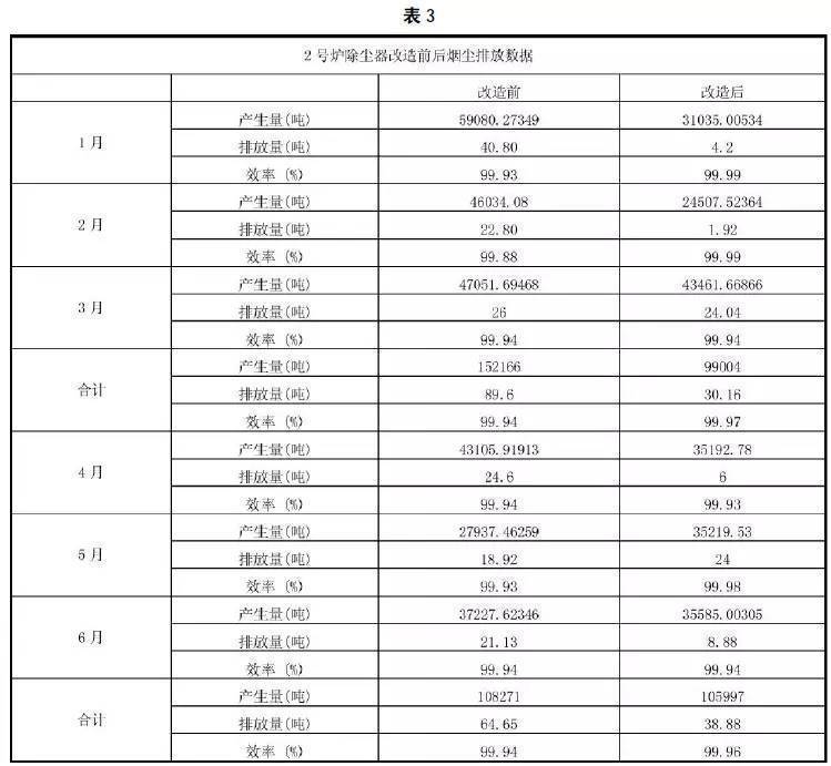 5.1 除塵器改造前堯後的煙(yān)塵(chén)排放(fàng)狀況