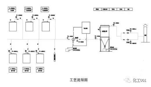 萘結片裝置工業(yè)萘槽及液萘(nài)發貨(huò)產生的含萘廢氣,在引風機的作用下,進入集氣管(guǎn),集中(zhōng)後經立式換熱器處理(lǐ),部分液態萘流出換熱係(xì)統,收集至萘收集槽集中處理;另外部分萘廢氣通過袋式除塵器捕集淨化,萘被收集後送至萘收集槽集中處理(lǐ),氣體(tǐ)則通過引風機送入煙囪高(gāo)空排放(見下圖)。