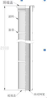 濾筒內(nèi)部采用金屬網圓(yuán)筒形內襯支撐,上、下分別與頂端蓋和底端蓋連接。濾料的外(wài)側布置(zhì)一定(dìng)數量的包箍帶,保證褶型濾料在噴吹清灰時不發(fā)生變形。濾料為硬挺水刺濾料。