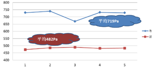 (b) 平均產氣量120t/h 除塵壓差對比