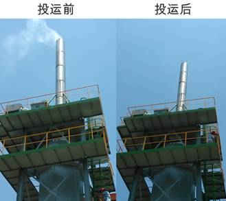 圖3蜂窩管式WESP試驗平台投運前、後對比(bǐ)圖