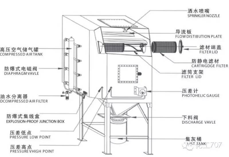 由於鋁粉爆炸,好關鍵的要素是鋁粉濃度,控製鋁粉爆炸好(hǎo)有效的方(fāng)法,就是(shì)控製(zhì)鋁粉的濃度(dù)。而該設備控製鋁粉濃度的工具是除塵(chén)器,隻需拋丸機除(chú)塵器(qì)的(de)工作(zuò)狀態良好,除塵效果好,整個拋丸清算機設備的(de)鋁粉濃度就不(bú)會升高。因而保證除塵用具良好的除塵效果,是該設備能否正常運轉(zhuǎn)的關(guān)鍵。除塵效果的優劣主要取決於過(guò)濾資料,當(dāng)過濾資料梗塞時除塵效果就(jiù)會大大降低。當過濾資料的通風及過濾狀況(kuàng)良(liáng)好(hǎo)時,除塵器的(de)靜(jìng)壓室和(hé)動壓室的壓差會穩定在(zài)一個固定(dìng)的範圍內,因而控製(zhì)除塵器的壓差是控製除塵器工作狀態的好有效的方法。基於此點,迪砂公司(sī)創造了防爆的除塵器,主要做法是將壓差控製儀,裝置在拋丸(wán)清算機除塵器左近沒有(yǒu)震動的中央,當(dāng)拋丸機除塵器工作一段時(shí)間梗塞時(shí),該儀器所(suǒ)檢測的壓差值就會發作變化,當(dāng)檢測值(zhí)超(chāo)出設定上下限時,壓差控製(zhì)儀就(jiù)會控(kòng)製除塵器的(de)濾袋的清潔機構工作,如震打或反(fǎn)吹機構將除塵器濾材外表(biǎo)的灰塵去(qù)除,以保證除(chú)塵用具有(yǒu)良好的工作狀態。當(dāng)自動清潔仍不能滿(mǎn)足請求(qiú)時,壓差控製儀會(huì)控製報警器報警(jǐng),並控製設備自動關閉,以防不測。