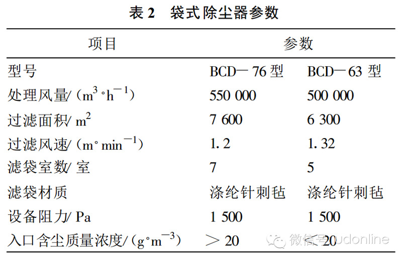 袋(dài)式(shì)除塵器參數見表 2 。